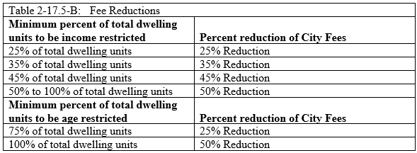 All City required fees associated with development may be reduced in accordance with the table below.